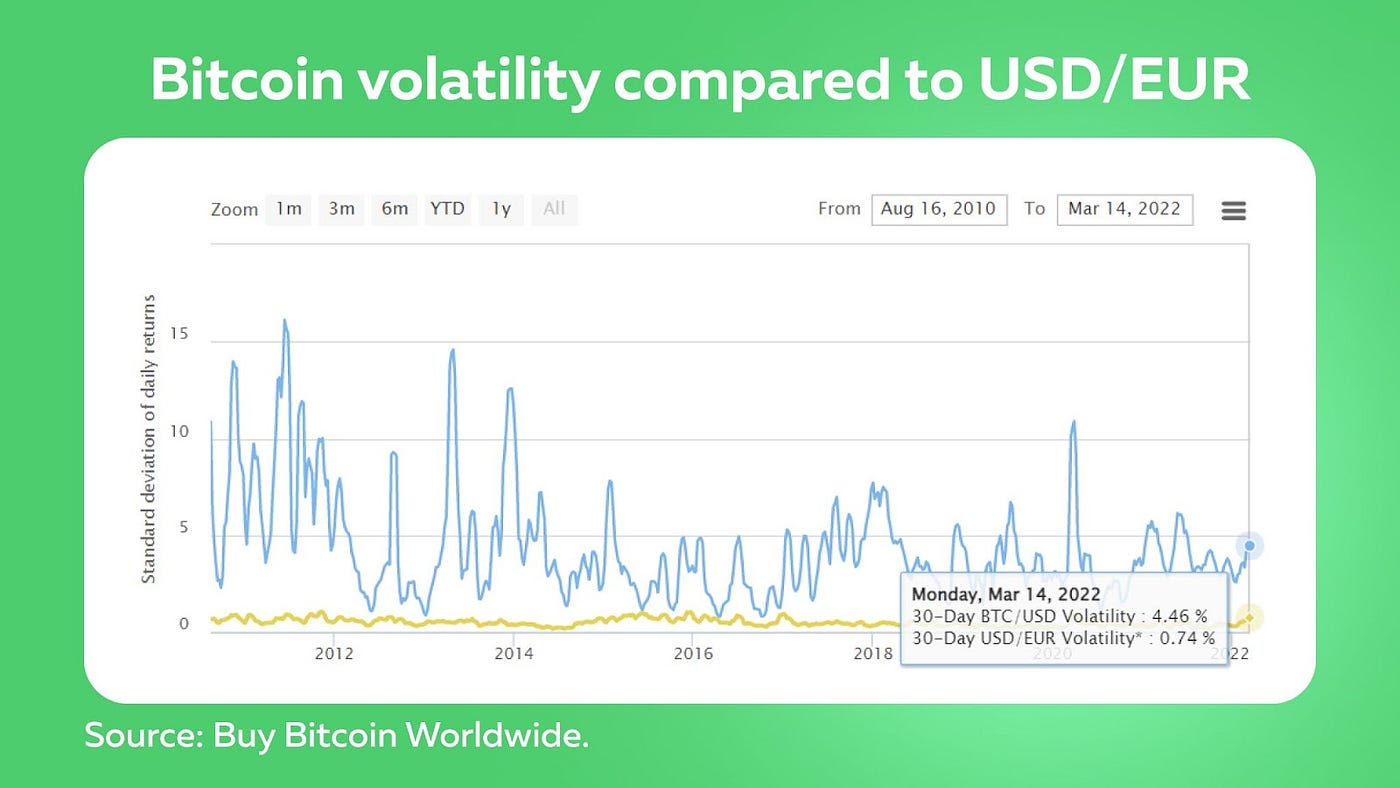 Nevertheless, Bitcoin’s price fluctuations were steadily decreasing, resulting in enhanced network stability. Of course, Bitcoin’s volatility with 4.46% at the time of writing significantly superiors 0.67% of Euro against the dollar. However, this is a significant drop compared to the peak price change of 16.11% on June 13, 2011.