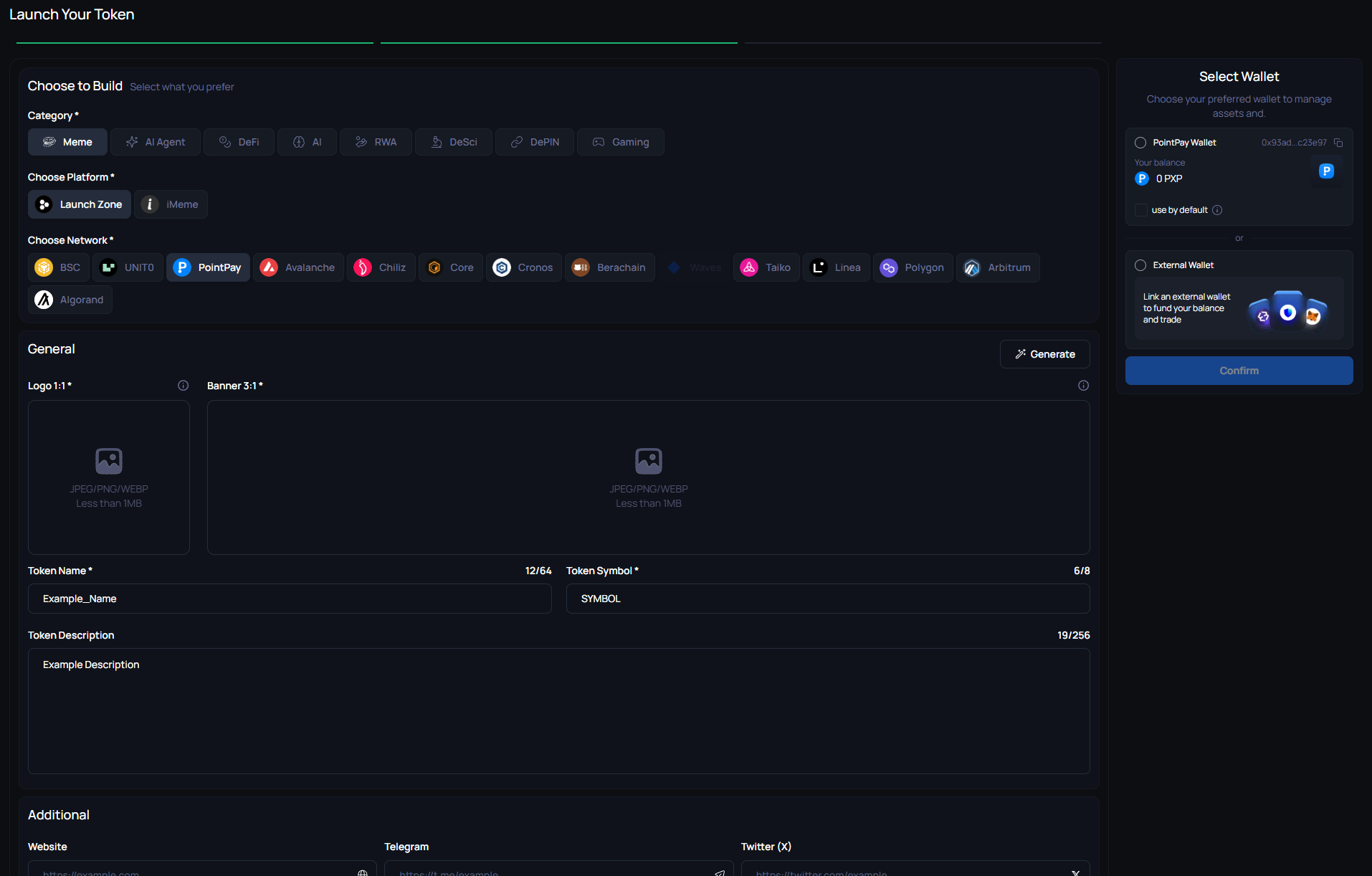 🔹 Category Selection: Launch tokens across trending sectors - Meme, AI Agent, DeFi, RWA, DeSci, DePIN, or Gaming.